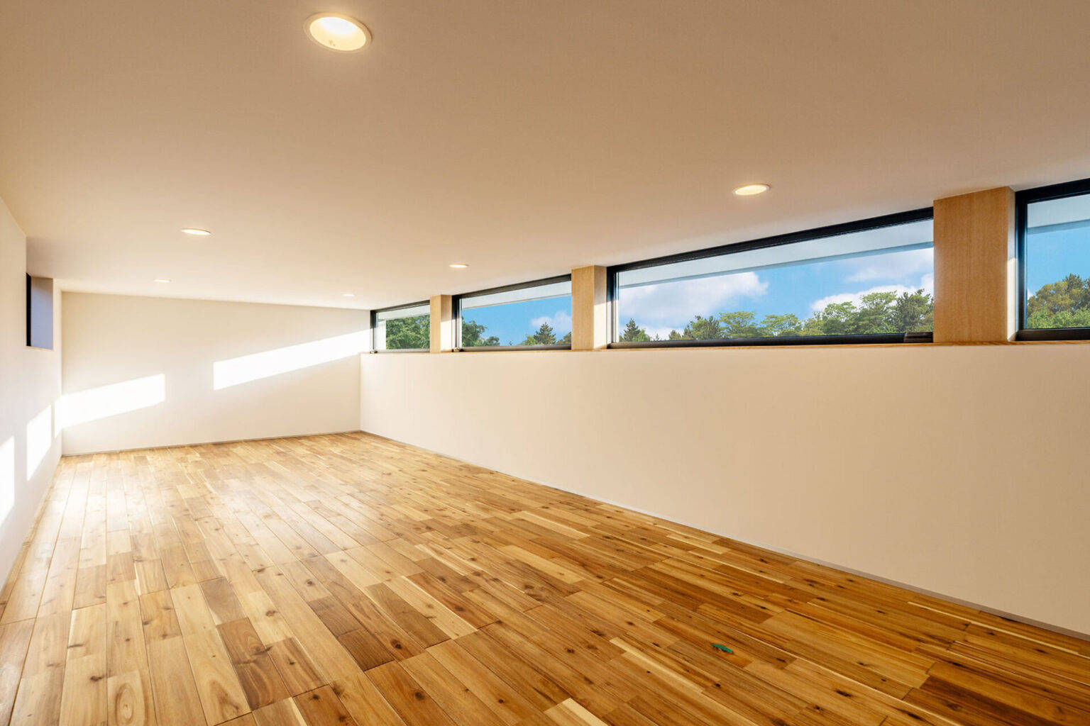 子ども部屋は、お子様の成長に合わせて、壁を設けて仕切れるように設計しています。壁を設けてそれぞれのお部屋が独立しても、中庭を通じて家族の気配を感じることができ、安心感が得られます。