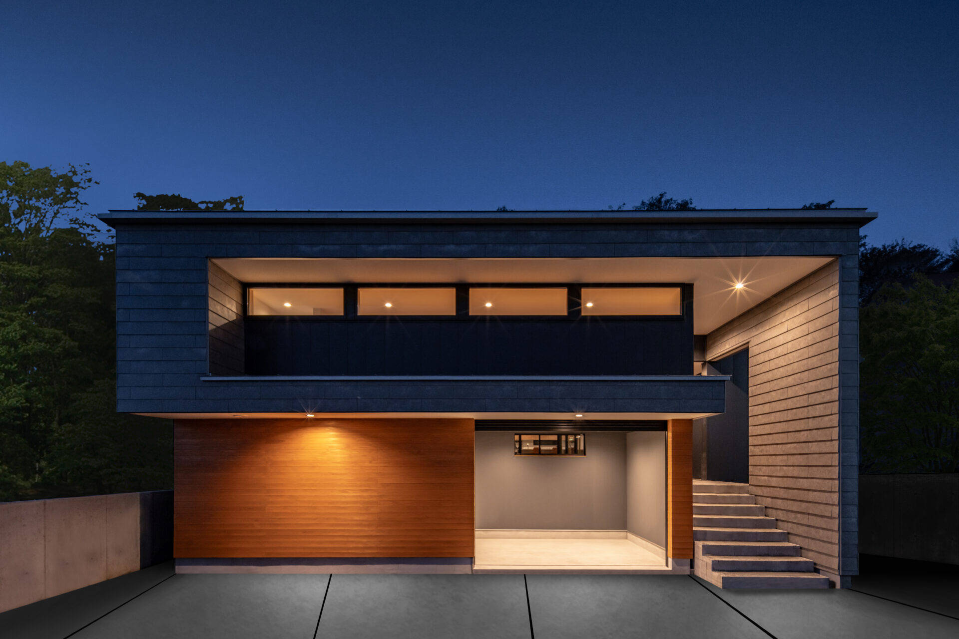 敷地の高低差を利用して作られた半地下のバイクガレージと少し高い場所から景色を望むことの出来るロフトは、忙しい日々の中に非日常を演出してくれそうです。