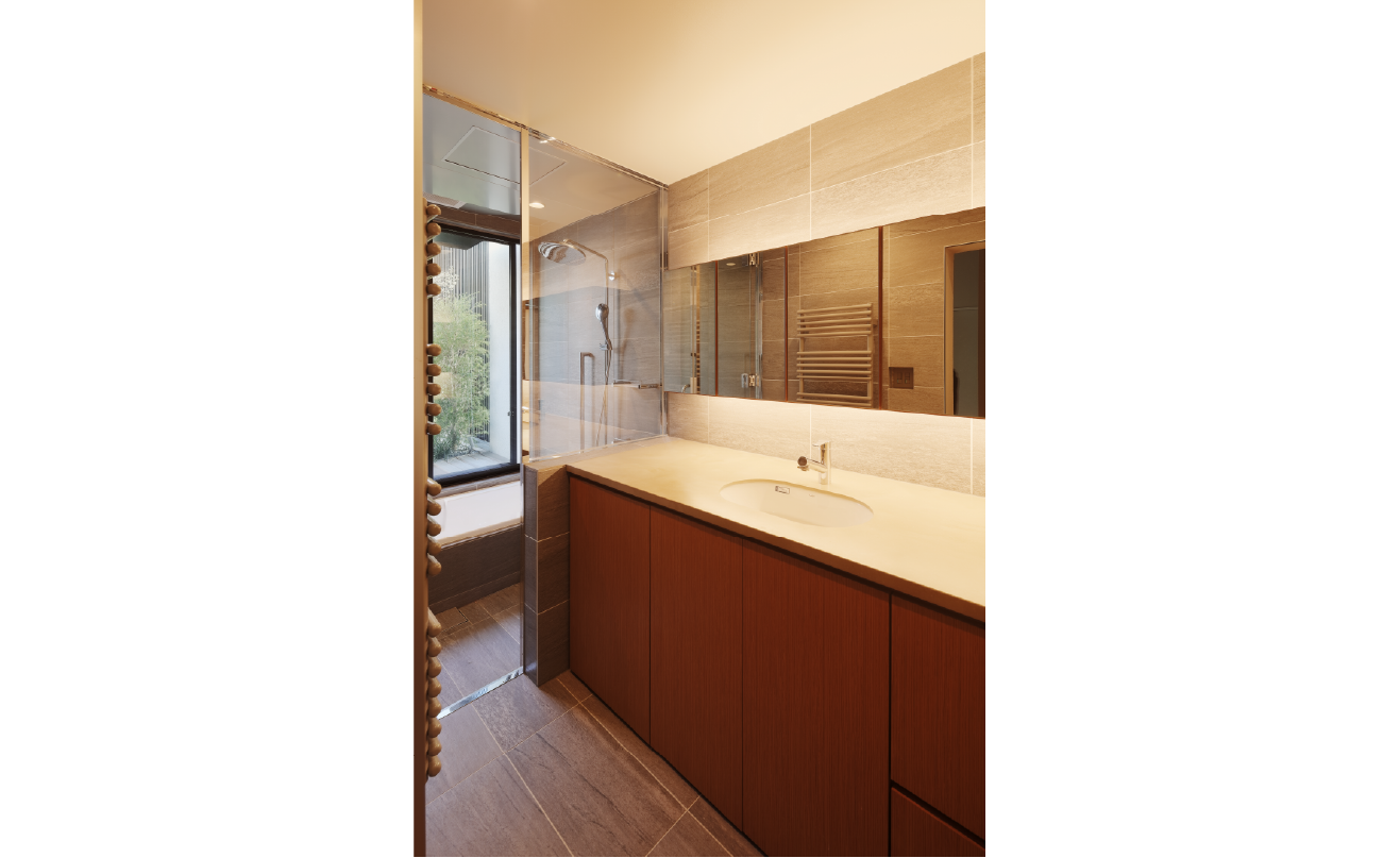 プライバシーを保ちながらLDKを屋外に開放するため中庭を設け明るく風通しの良いLDKを実現しました。