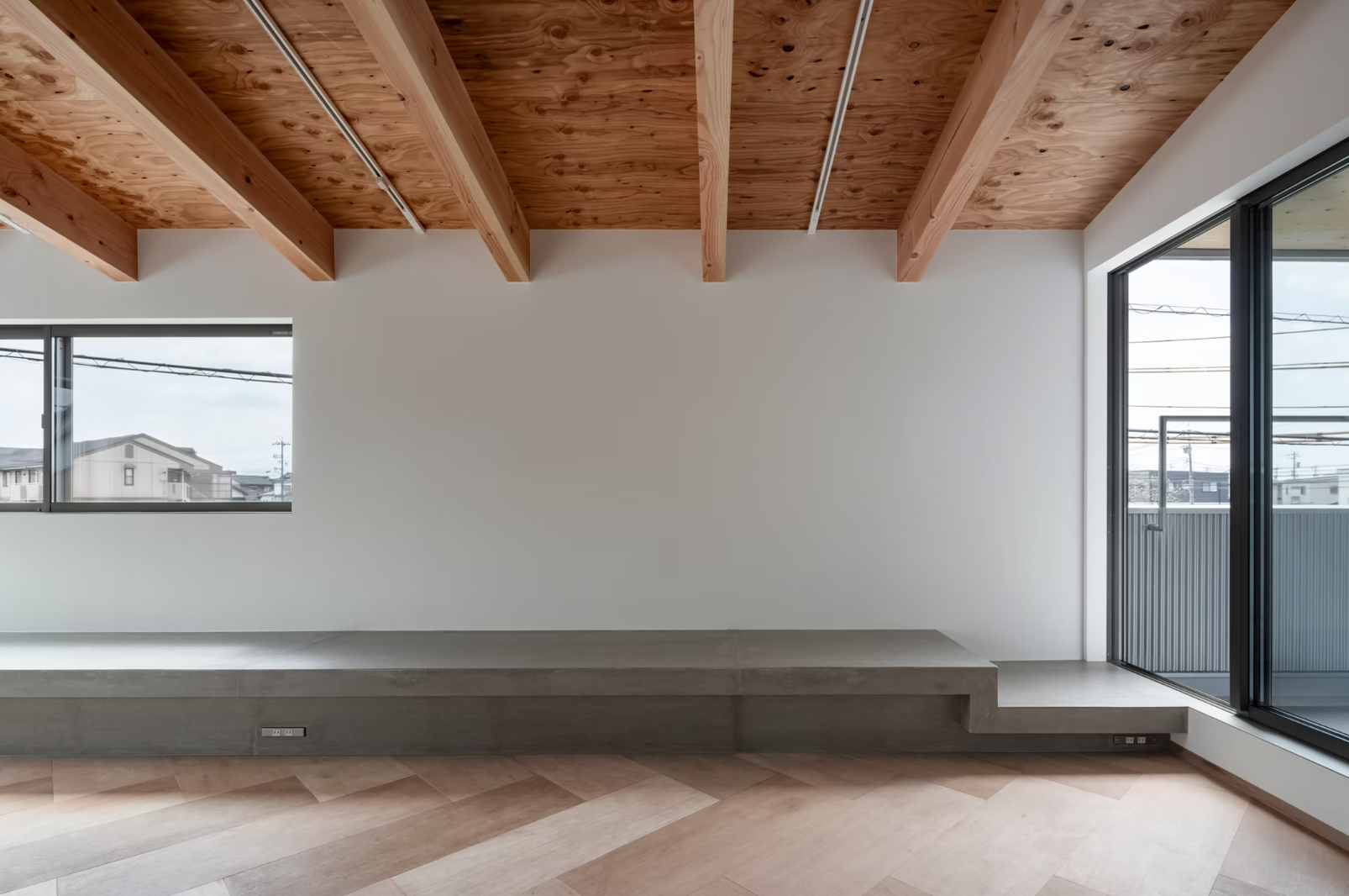 建物はスキップフロア構成とし、仕事空間と生活空間を緩やかに分節。ハイサイドライトから差し込む自然光が仕事場をやわらかく照らし、明るく開放感のある環境を生み出しています。 生活スペースでは、外部からの視線に配慮しながら、窓やバルコニーの位置を丁寧に計画することで視線の抜けを生み出し、限られたスペースの中でも開放感を感じられる空間としています。