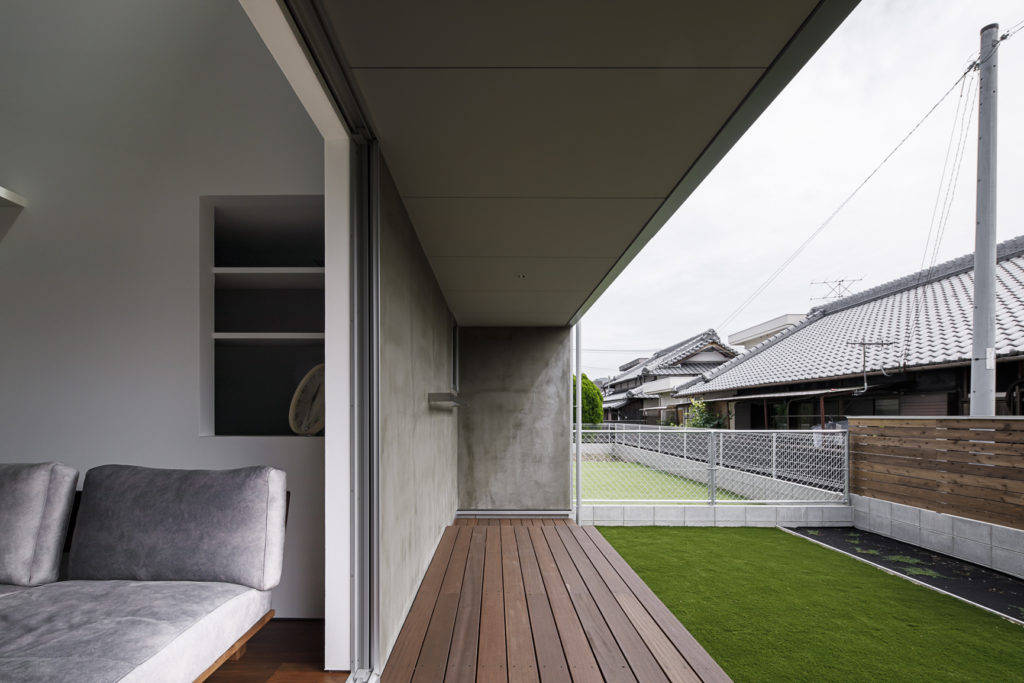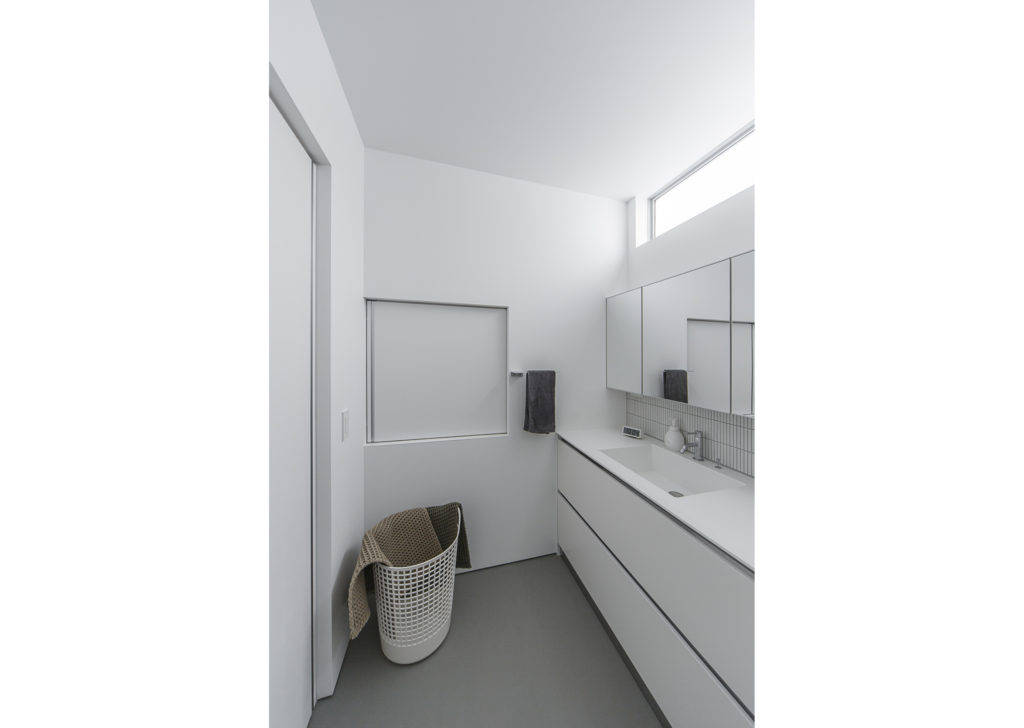 ハイサイドライトを設けることでキッチンの奥まで光を十分に届け、通風も可能にしました。掃き出しの窓は庭へ向けて水平方向の広がりを、ハイサイドライトは空へ向けて垂直方向の広がりを感じさせます。