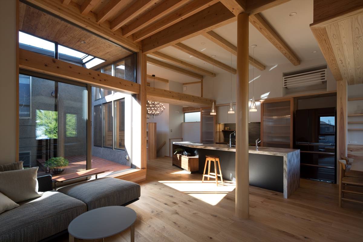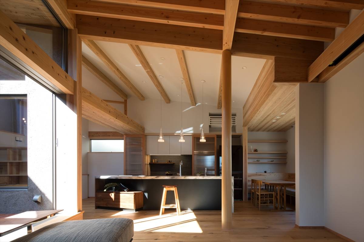 当初住まい手はハウスメーカーなど4社から図面を提案して貰いながらも、どのプランも決め手がなく困られていました。当事務所で手掛けた、本物の木を使った木組みの美しさと吹き抜け空間の力強さを見て、このような住まいのかたちが良いと決心頂きご依頼下さいました。設計事務所の自由な発想力、提案力の信頼、構造の理解度の安心さ、も決め手だったとのお話でした。