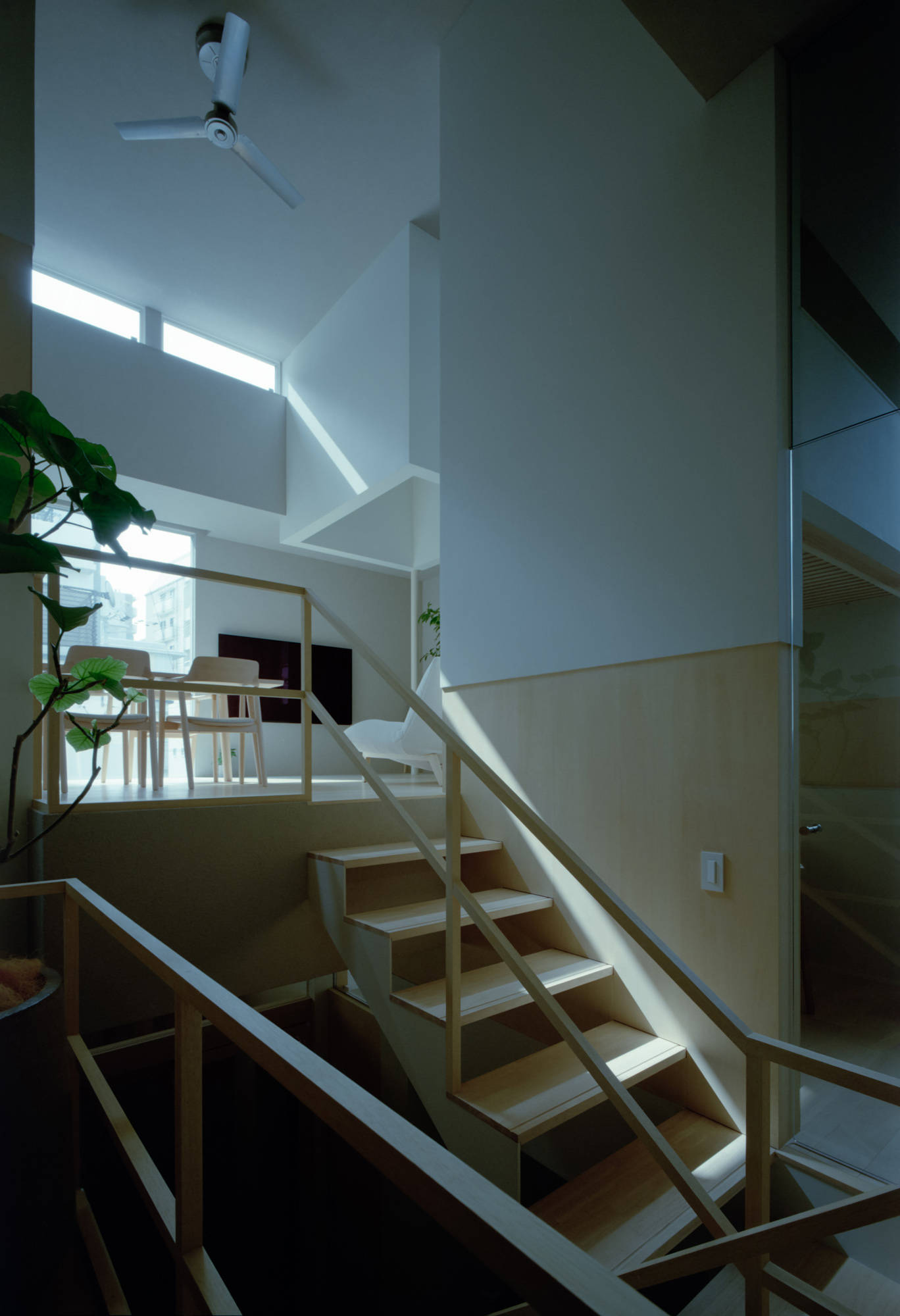 建物の高さを最大限に活かすため、道路斜線制限に対しては天空率を検討し、都市のスカイラインに貢献するようなデザインを目指しました。また、2階のボリュームは軒下から天井まで壁と同じ仕上げにすることで、まるで空中に浮いているかのような軽快な印象を与え、見る人に驚きを与える面白い外観を実現しています。