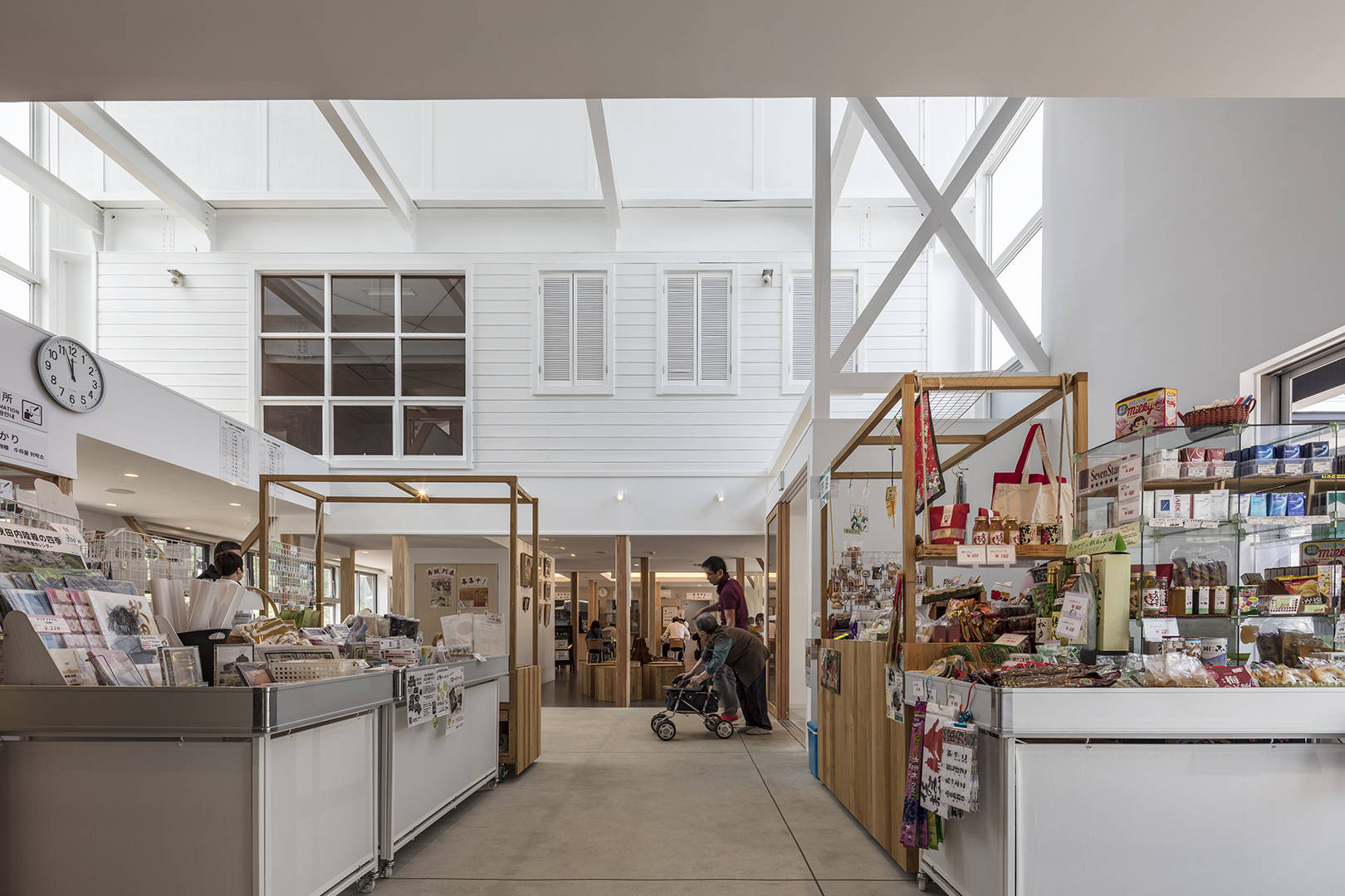 その傍で、住人がギャラリーを訪れたり食事を楽しんでいる。駅舎が単なる待機場所としてあるのではなく、外からの利用者と地域住民が触れ合うそんな文化のコミュニティが生まれる場として機能させたかった。