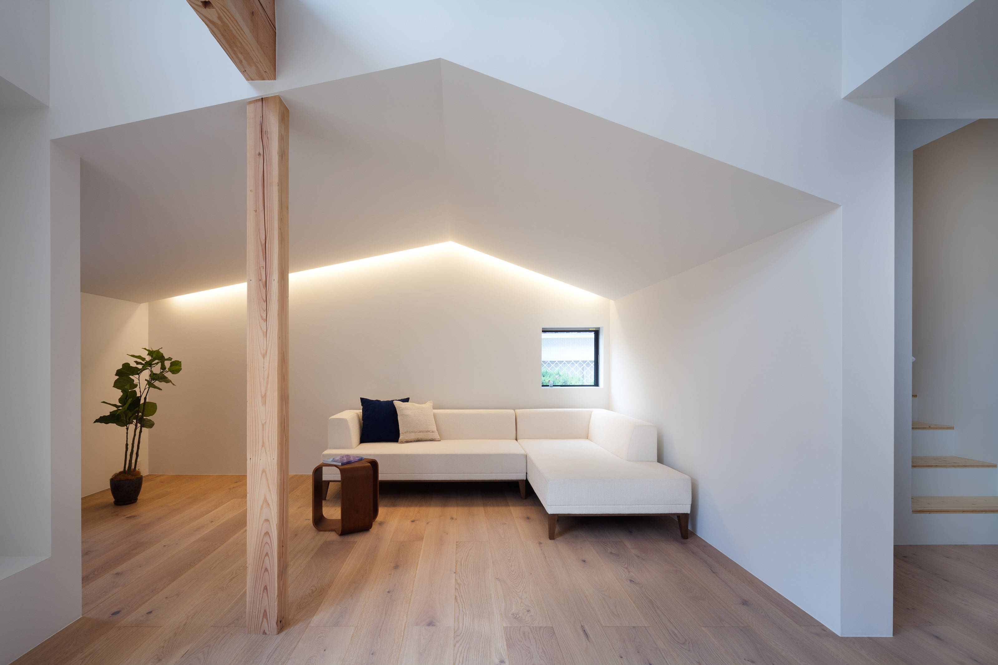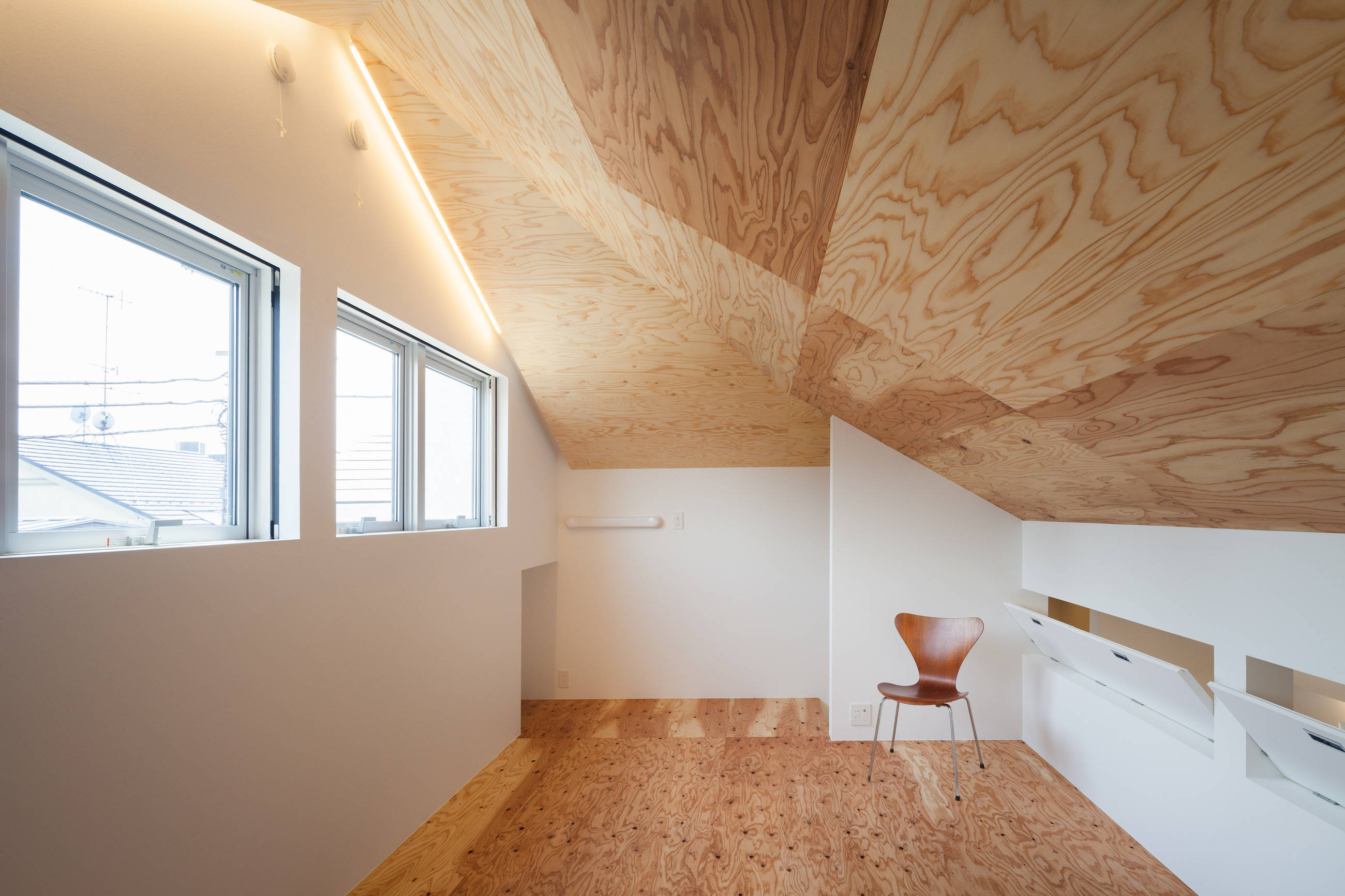 また、既存の屋根は切妻屋根の連続で構成されていて、周辺の住宅と同じように連なって街並みを形成していました。住宅の多くは、内部で屋根型を感じることはありません。