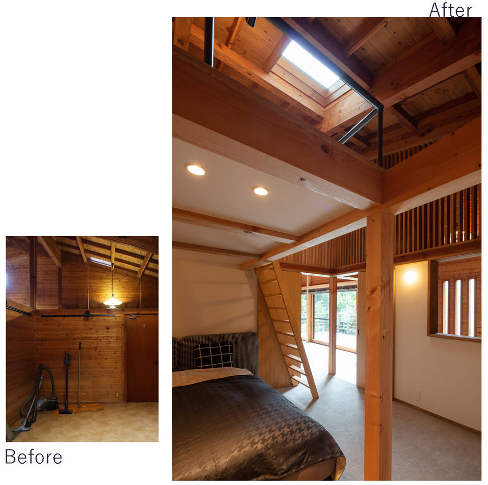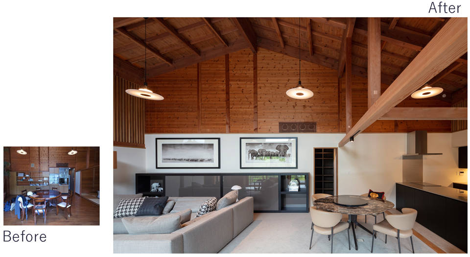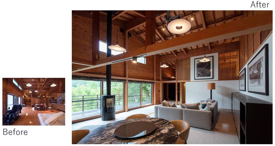 緑豊かな湯河原の山の中腹に建つ築18年の山荘(住宅)を購入しグレートピレニーズ2頭と快適に過ごせる住まいへと改修しました。私達自身もラブラドール3頭と約20年暮らしてきた中で感じてきた事をお施主様と共に具体化した住まいです。