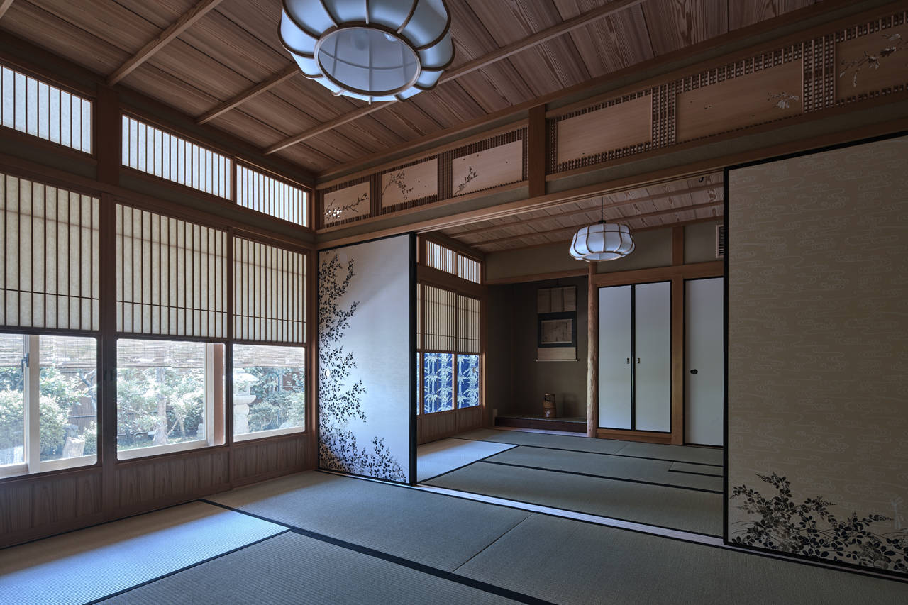 各居室からは性格の異なる庭を眺めることが出来、庭屋一如の考えに