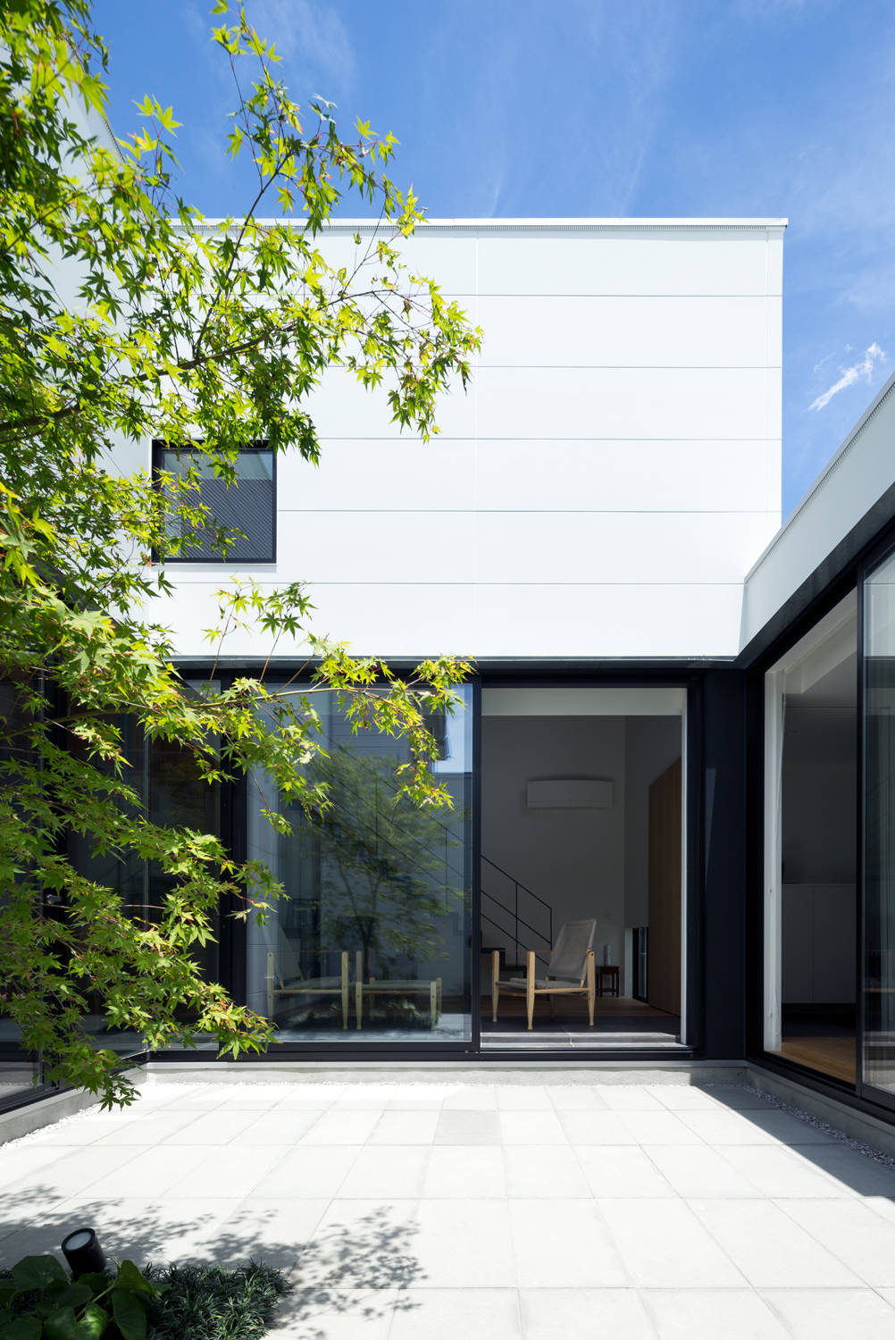 袋小路の行き止まりにある旗竿敷地という、クローズな環境に計画された三つの庭を持つ家です。