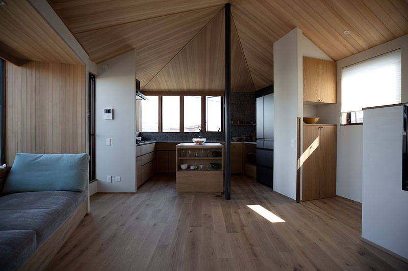 西荻窪の骨董通りを抜けた先20坪の土地に 建坪12坪の3階建て染織り作家である妻のアトリエを1階に2階3階は 家族3人の住まいとして貫く大きな窓 道にこぼれる緑は 家と町をつなぐ連なる屋根並みの上に 浮かび過ごす時は刻々と変わる空の光に 染まり 満ちてゆく織りなす日々 手触りのある暮らしその向こうに