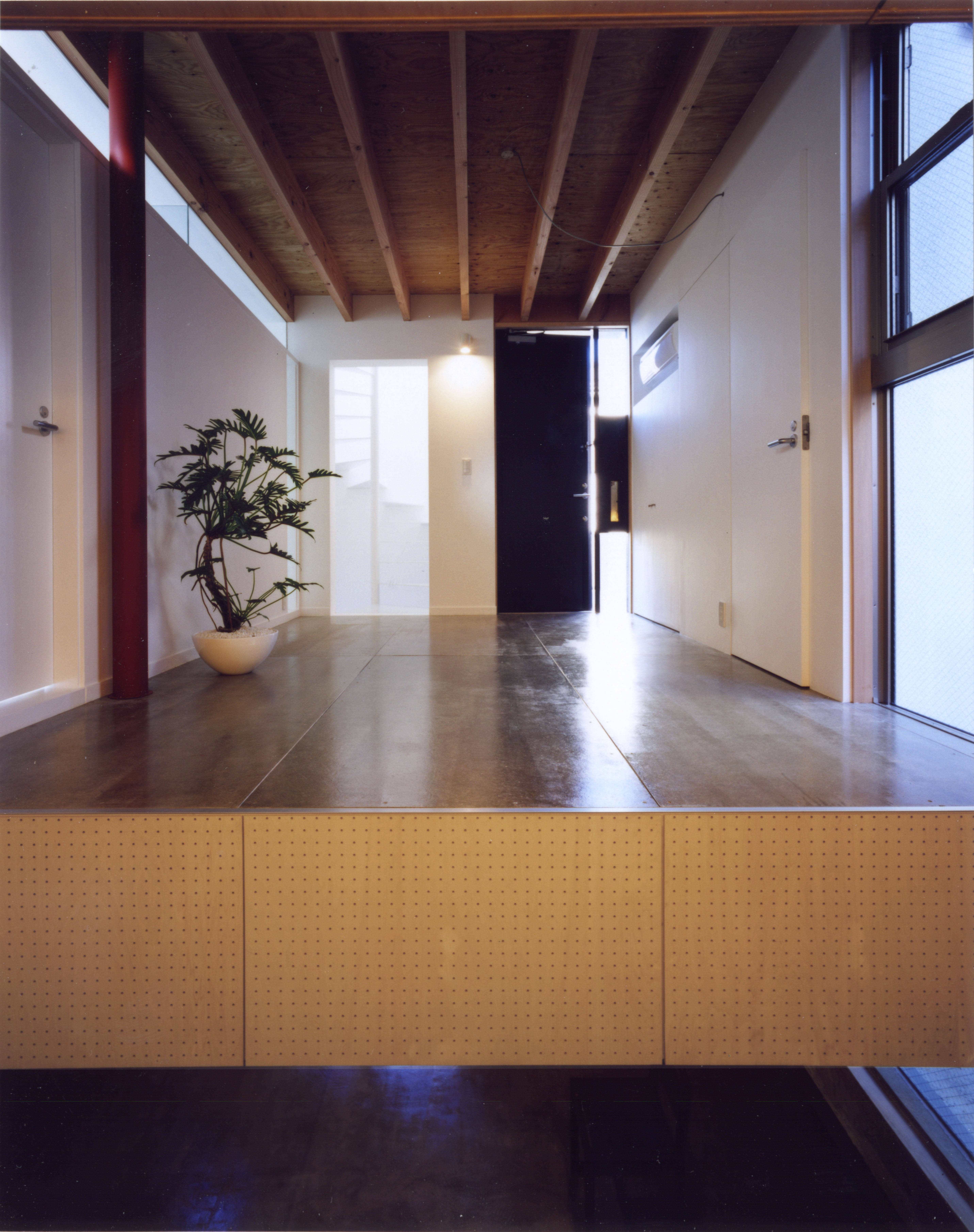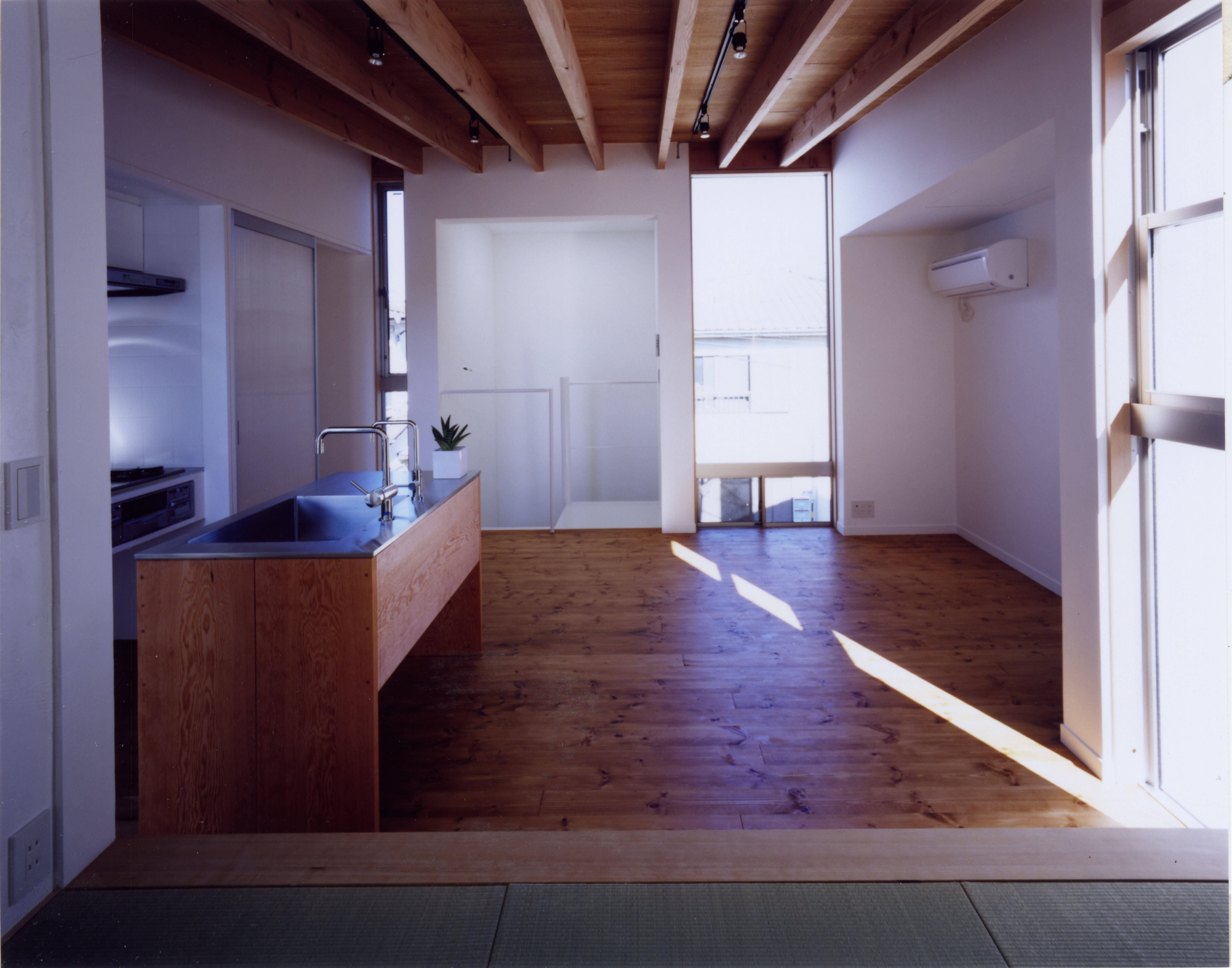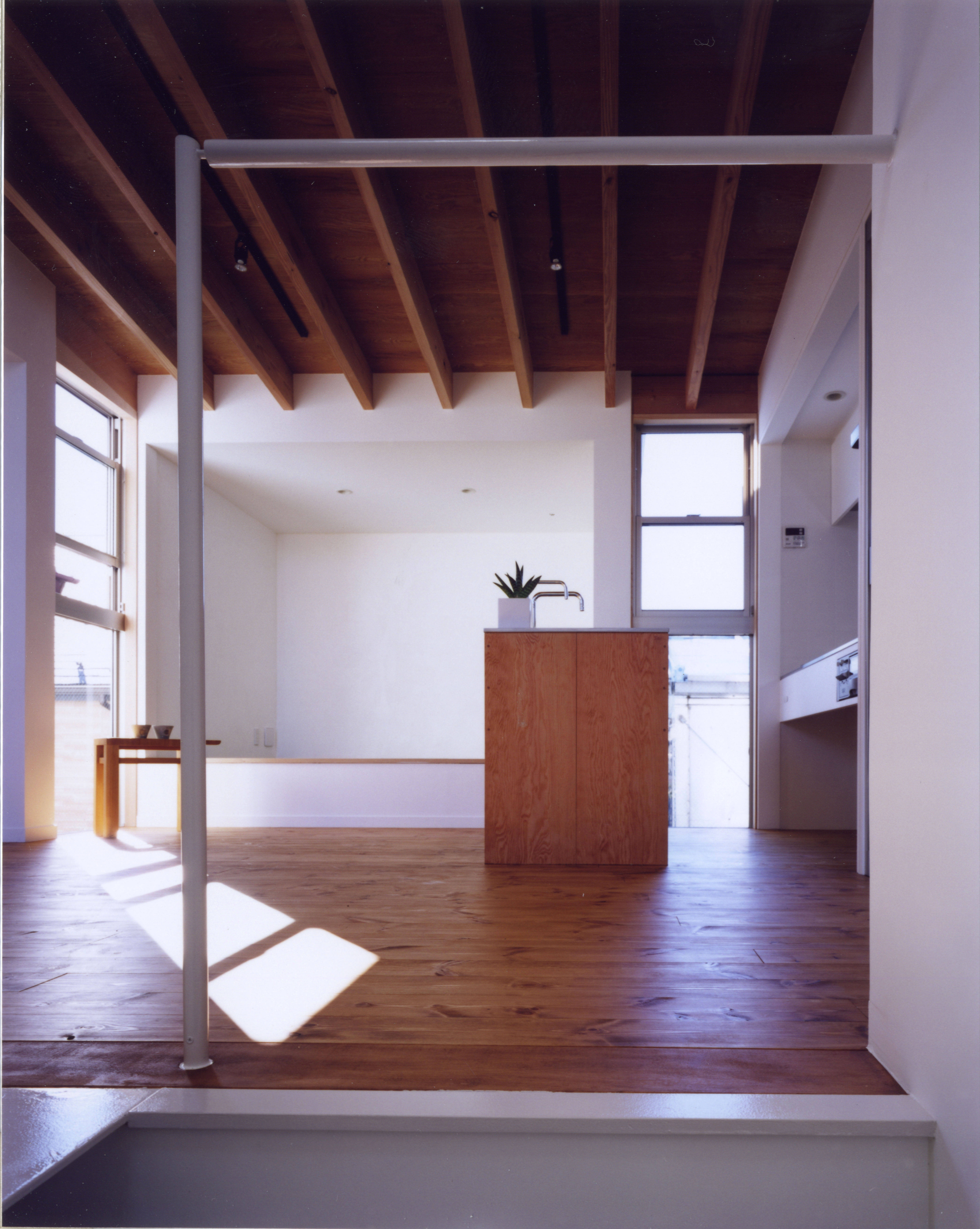 都心の市街地に建つ、若い夫婦と子供一人のための住宅。敷地は、約20坪・建ぺい率40%で、建築面積は8坪となる。小さくても魅力のある空間づくりが主題となった。