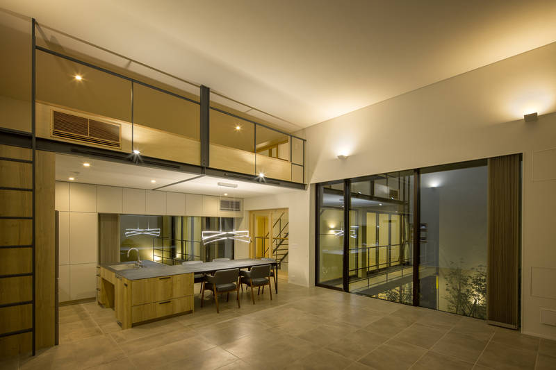 鎌倉の海に程近い、潮騒が届く敷地に建つ、4人家族のための週末住居です。敷地を大きく4分割し、南東と北西に庭を設けています。この庭が1・2階の各部屋に面しているため、どの部屋からも庭を眺め、日当たりよく過ごせるように配慮してます。