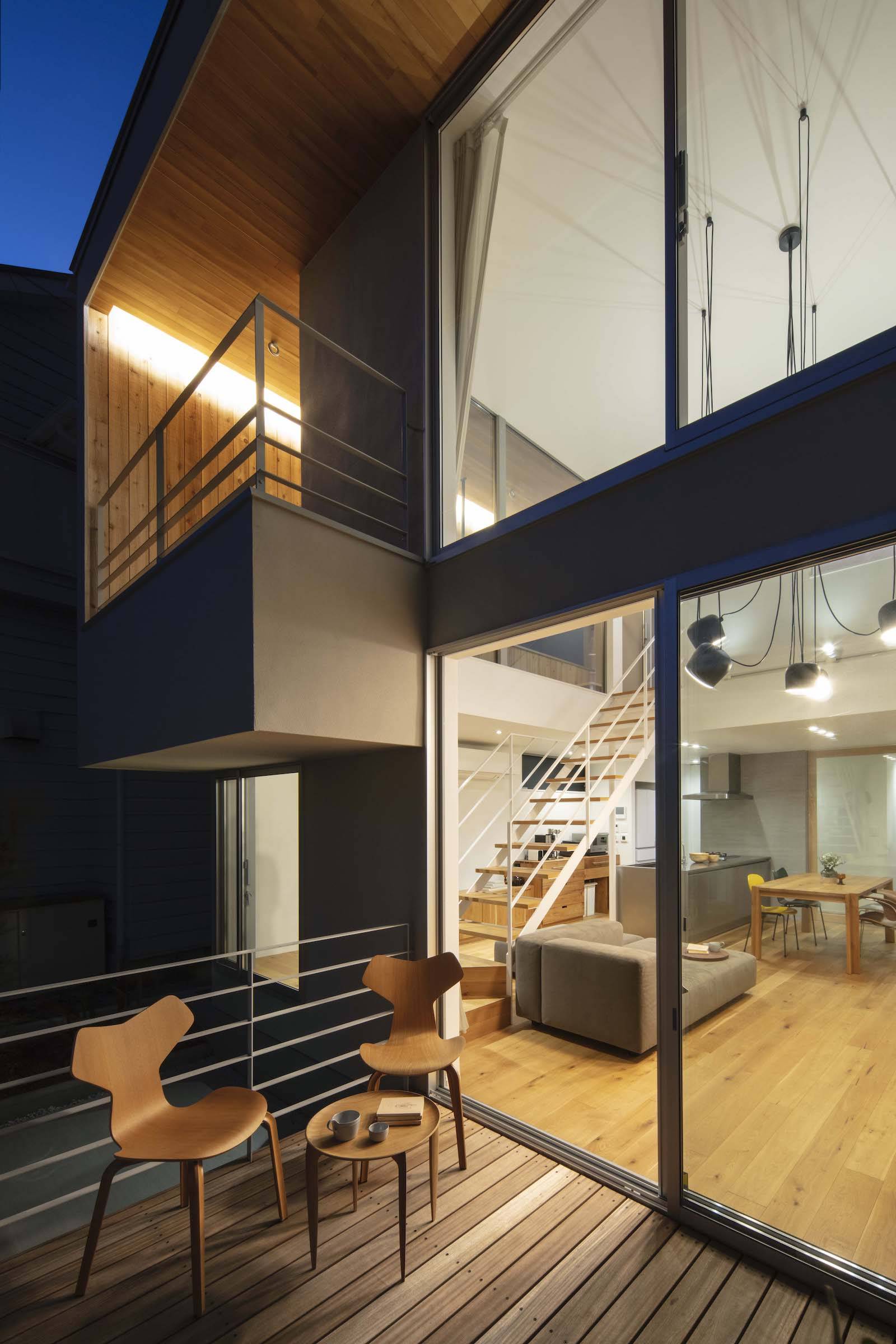 神奈川・葉山町に建つ木造2階建ての新築住宅です。「光と人が集まる住まい」というご要望をいただきました。吹抜けと2つのテラスを盛り込み、住宅内部に外部を取り込むような立体的な空間の広がりを実現しています。
