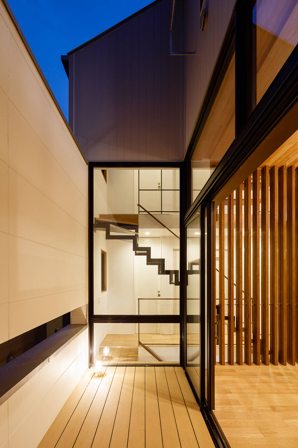 「シンプル、ナチュラル、家族の成長と変化」を家づくりのテーマとした、30代のご夫婦とお子様の住まい。南に広がる大きな庭との一体感を大切にしながら、人が集まり、家族とともに成長し変化していけるこの住まいでは、リビングの吹抜の周りをぐるっと回遊する「くるり」が、大きな特徴になっています。キッチンの近くに水廻りを配置し、洗濯→物干し→たたむ→仕舞うの一連の作業が効率よくできるように計画しています。