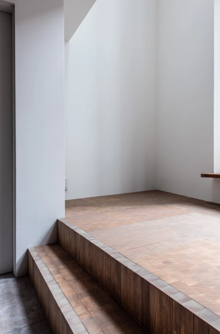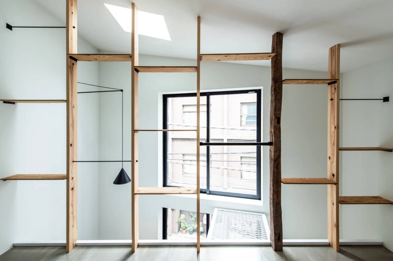 三方に建物が迫っているので、接道側に大きな窓と天窓からの光が降り注ぐ、吹き抜けサンルームのような小上がりを設けています。