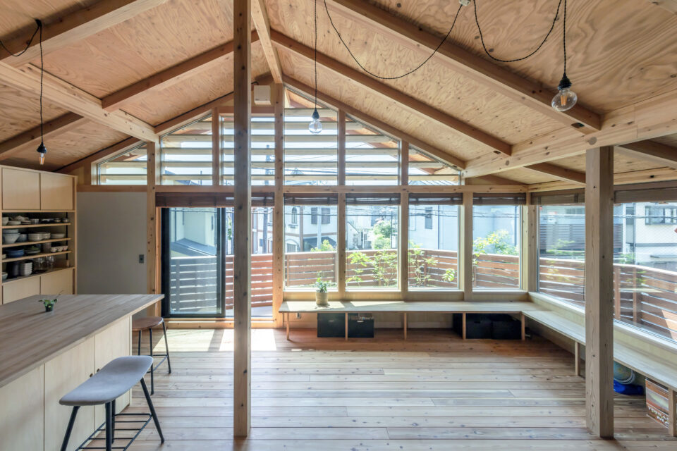 ロフトの壁はルーバー状にデザインしており、1階全体の空気が循環することでエアコン2台で十分に賄え、効率的な空調管理ができます。