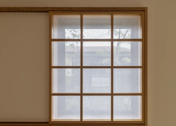 網戸の代わりにレース障子を採用。風を通し、空間の雰囲気やプライバシーも守る。