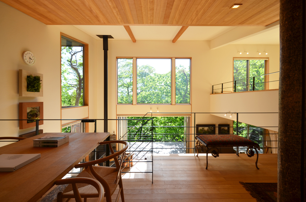 斜面に合わせた「スキップフロア」を採用し、段差を活かして高低差を住まいの魅力へ。