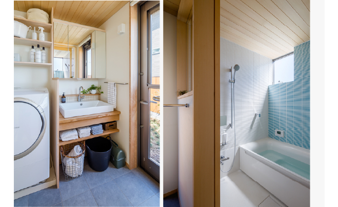 洗面台の裏やタオルの仮置き場、ピンチハンガーの位置まで、すべてが最初から計画済み。