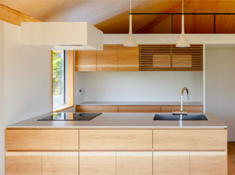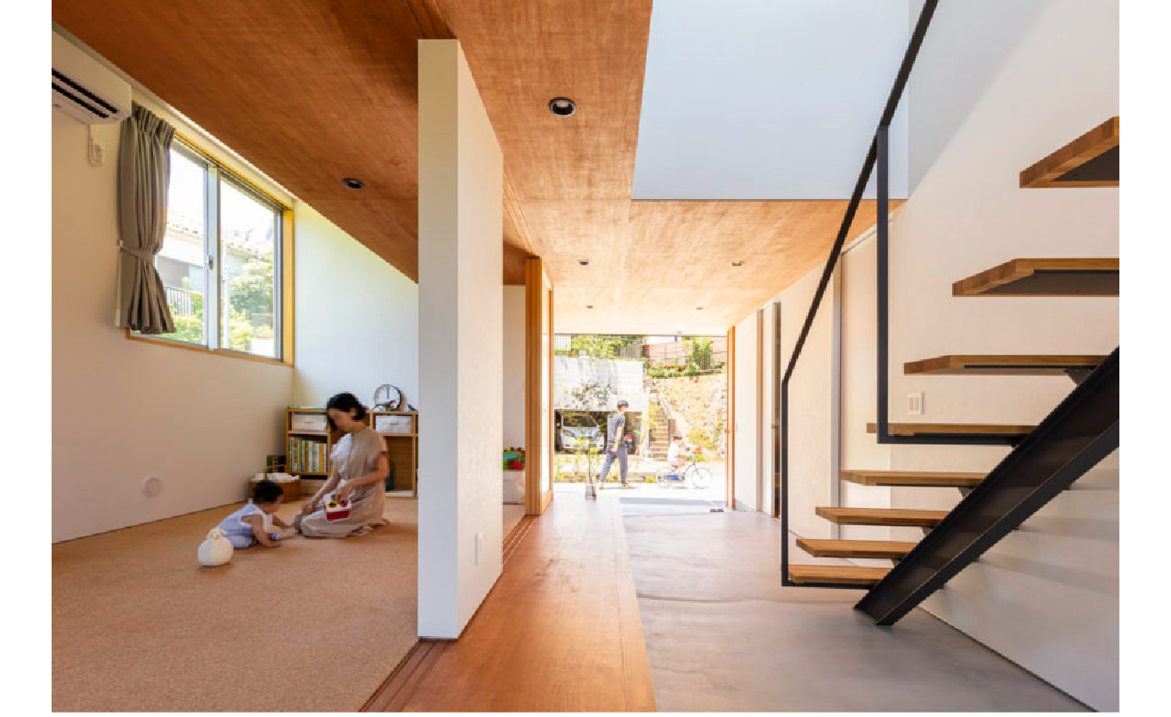 鎌倉市の高台に建つ4人家族のための住まい。鎌倉の自然を感じながら暮らしたいという思いからこの土地が選ばれました。人当たりの柔らかなご夫婦は、ご近所付き合いの多い地域にも自然に溶け込んでいます。