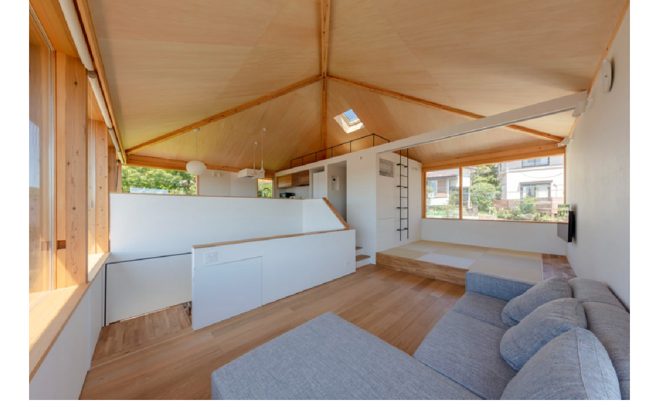 安全面では階段に小さなスライド扉を設け、お子さんの成長に配慮。細やかな気遣いが組み込まれた仕掛けが日常に安心感を与えます。