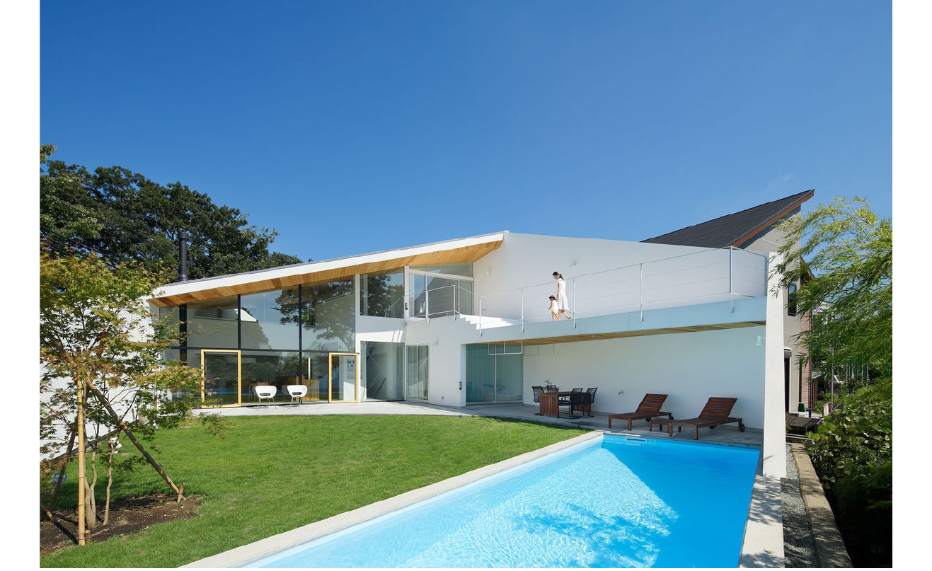 横浜市の閑静な住宅街に建つご夫婦と3人の娘さんの住まい。お施主さんからは「プールのある家にしたい」という強いご要望がありました。