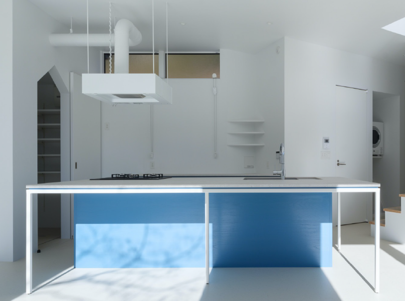 西日の影響を受けにくい敷地条件を生かし、カーテンを設けず透明感のある空間を実現しています。