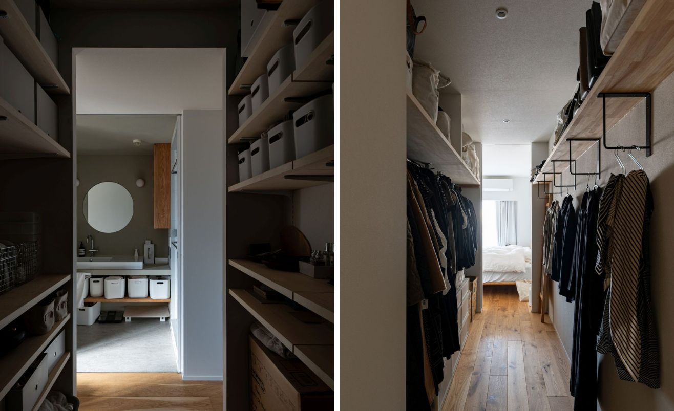 水まわりは既存の位置を基準に、配管への負担を抑えた計画としました。寝室と将来的な子ども室は、朝日が差し込む東側に配置。ウォークインクローゼットを介して玄関や水まわりへ抜けられる回遊動線を確保し、使い勝手を高めています。