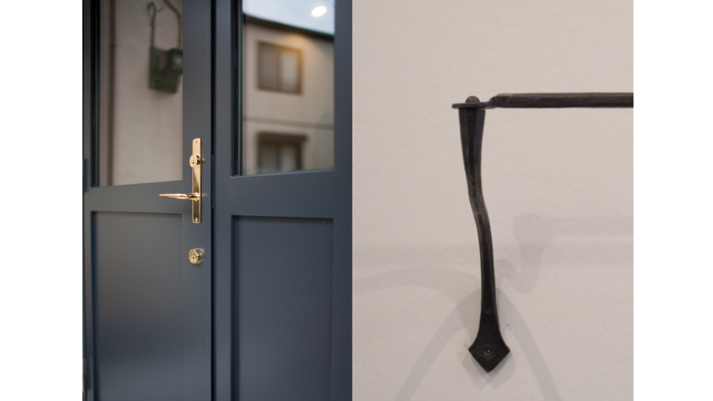 内装では、削ぎ落とすだけのミニマルさではなく、温もりを感じるデザインを大切にしています。真鍮のハンドルや鍛鉄作家による手仕事のバーなど、ぬくもりを感じるディテールのものを採用しました。