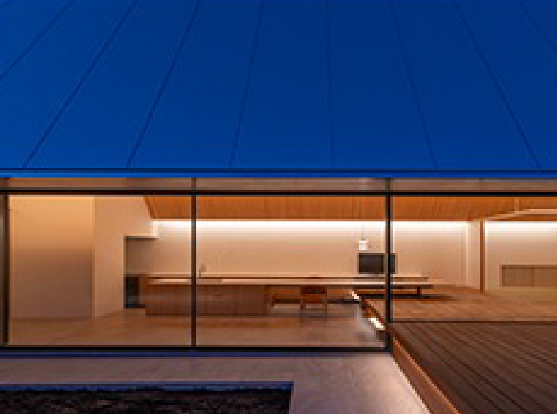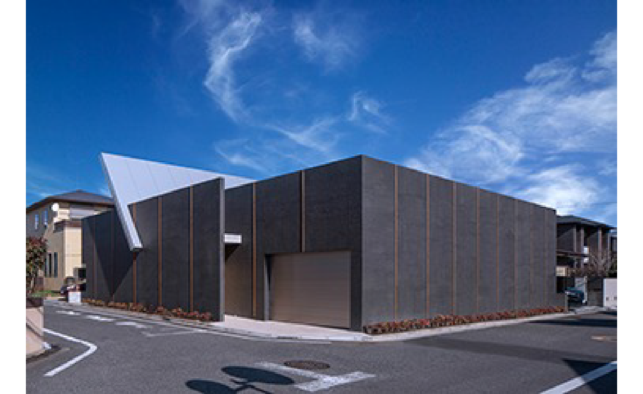 外部は黒い壁と、斜めに差し込む一枚のアルポリック屋根が端正な輪郭を描くように設計。空を映しながら天候によって色を変え、中庭側から見ても重さがなく、光と風を受け止める軽やかな気配が漂います。