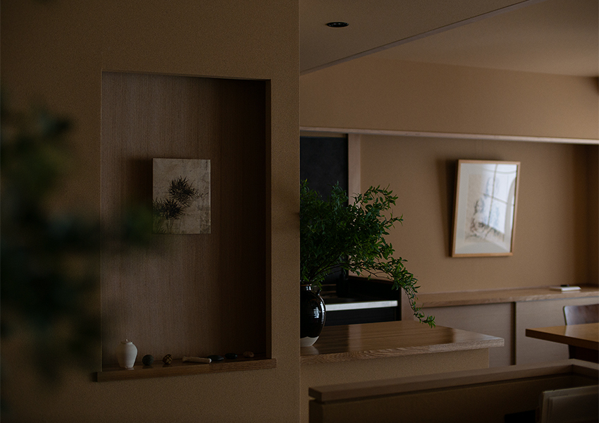 そんな和の世界観を日々の生活に取り込みたいという思いを叶えるため、このリノベーションでは、素材や線の扱い、光の取り込み方を丁寧にデザインすることで、「懐かしさ」と「洗練された現代的」な2つの和の雰囲気が融合する空間を目指しました。