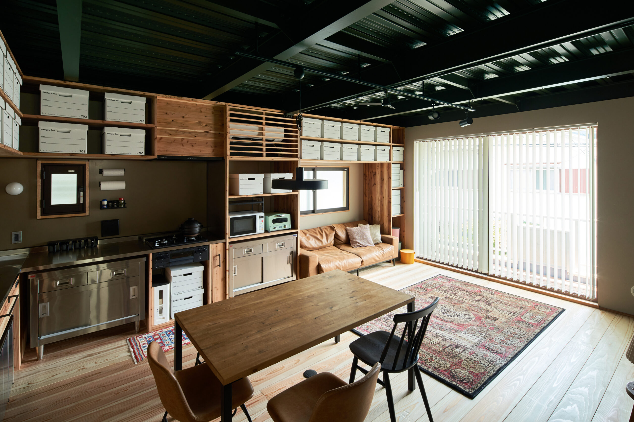 「厨房メーカーのキッチンは使いやすい」というご主人の話がヒントとなり、厨房メーカーのステンレス製天板を作業台として採用したキッチンを造作。既製品を組み合わせてキッチンを造作することでコストが抑えられ、空間にもシンデレラフィットしています。