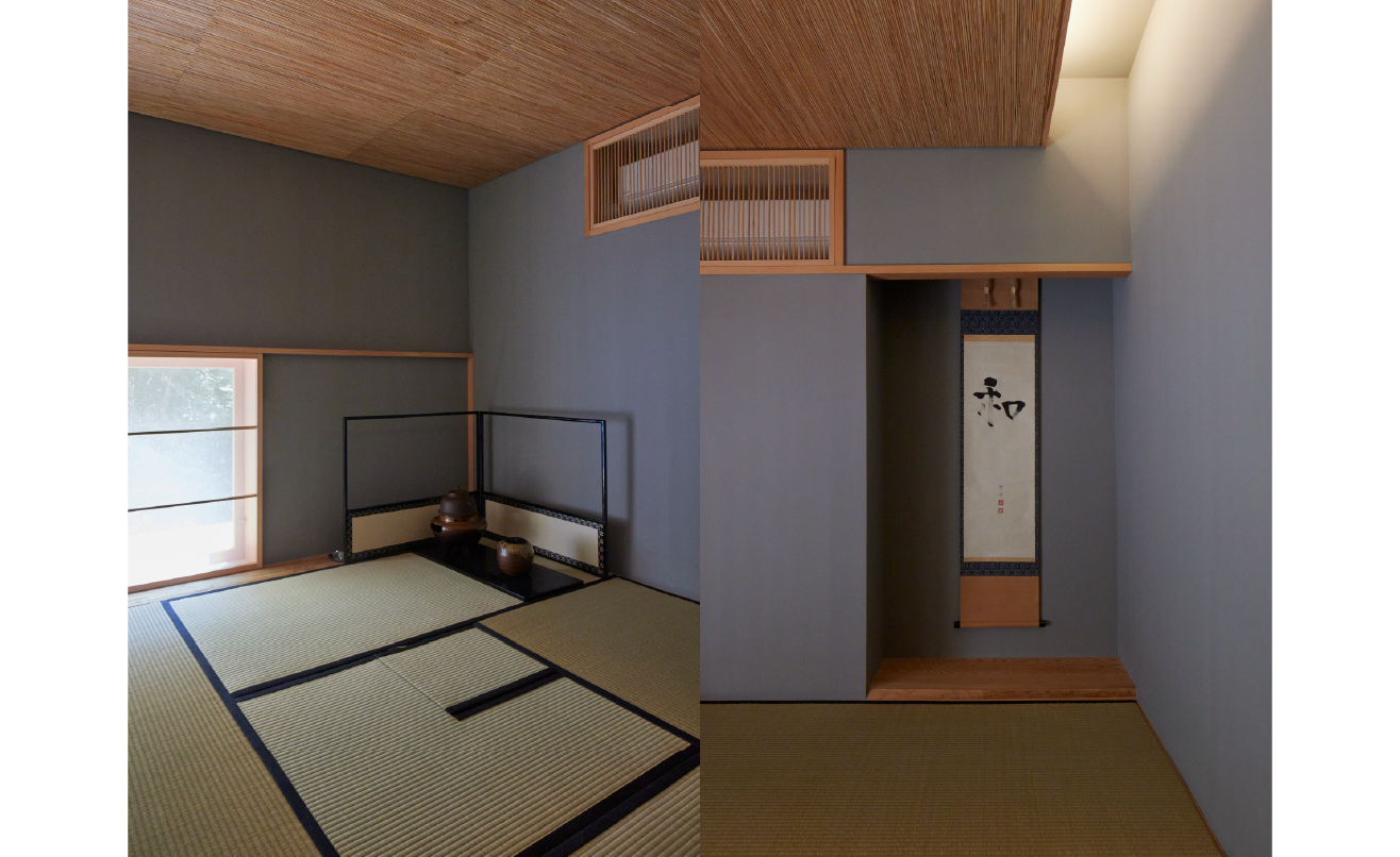 もともと蝋燭の明かりを前提としてきた茶室の思想を踏まえ、明るさを抑えた光環境が丁寧に整えられているのです。流派ごとの考え方を尊重しながら、数奇屋の自由度を活かして構成された空間です。