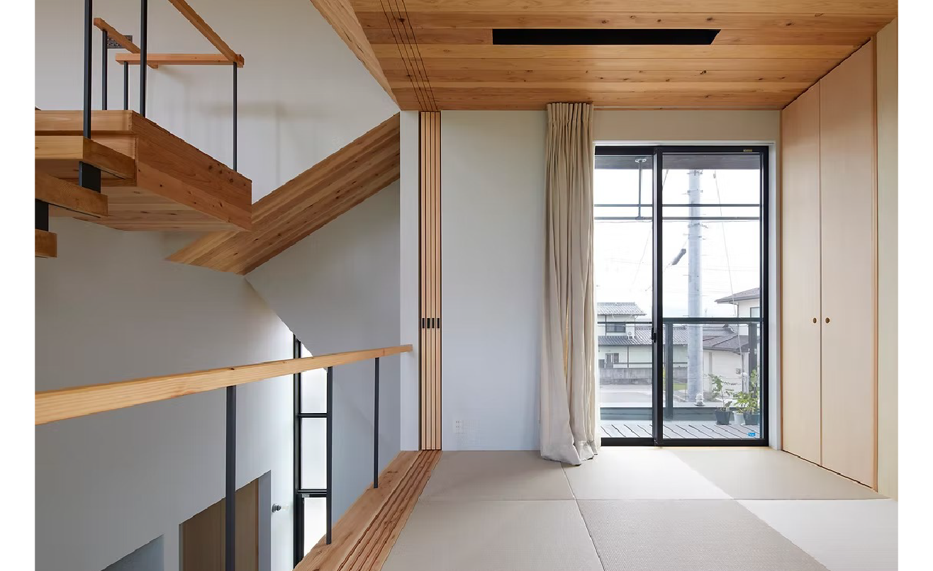一方でキッチンとLDKは2階に配置され、生活の中心となる場が集約されています。階段やスキップフロアの構成は、家族それぞれの居場所を確保しながらも、移動の途中で必ず気配が交わるよう計画されています。
