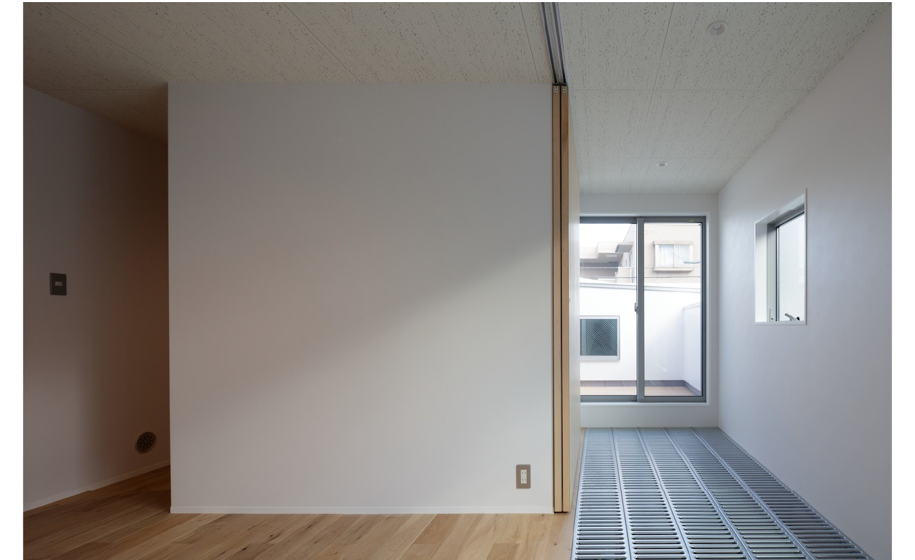 縦空間の上部には、光を柔らかく落とす仕掛けが施され、時間帯によって室内の表情が変化します。2階から屋外へと続く通路は、室内の延長として計画され、屋上テラスへと導く動線となっています。内と外を強く分けず、移動そのものが空間体験となるよう意図されているのです。