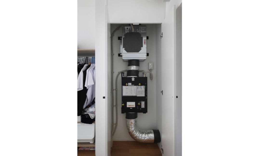 そのままの状態では暖気は上に、冷気は下にたまってしまうのでファン(写真5)で暖気を下に送ったり、冷気を巻き上げたりできるようにしています。この住宅は半地下の箇所があるのでカビを起こさせないためにも空気が循環することはとても大切なポイントでした。そういったケース以外でも、省エネ性能やヒートショック対策が気にされる昨今、空気の循環を考えることで、家全体を快適な温度環境に近づけることが可能です。