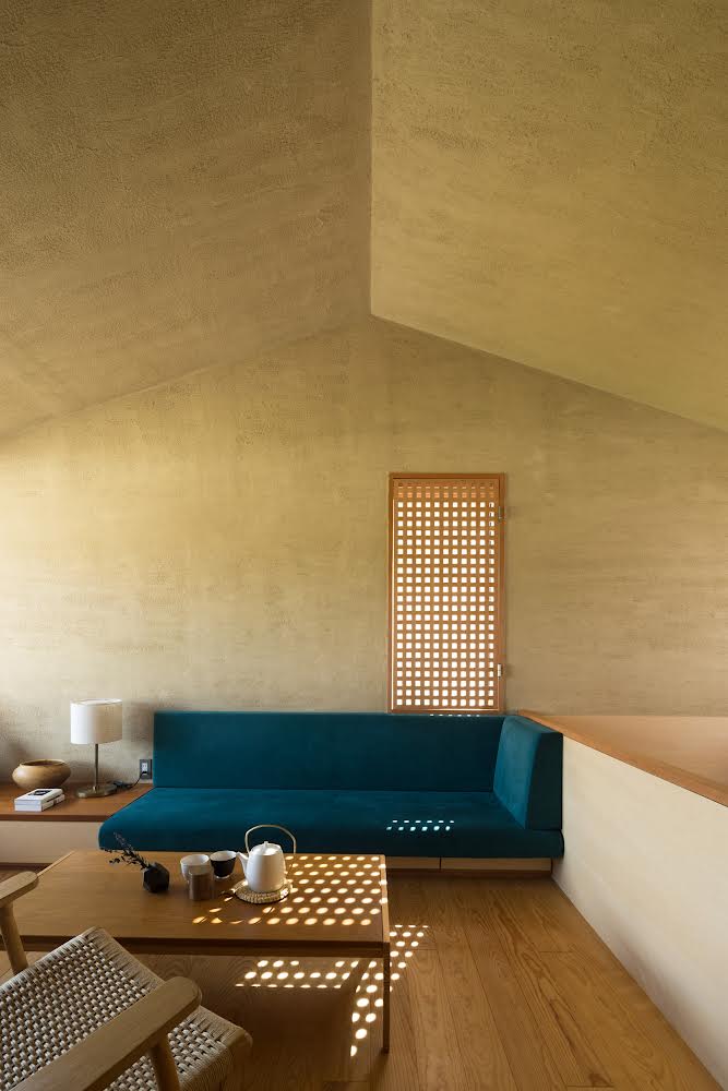 格子状のガラリを入れた窓は、季節や時間によって室内に届く光模様が変化するのを楽しむことができ「光が遊びに来る窓」と名付けています。