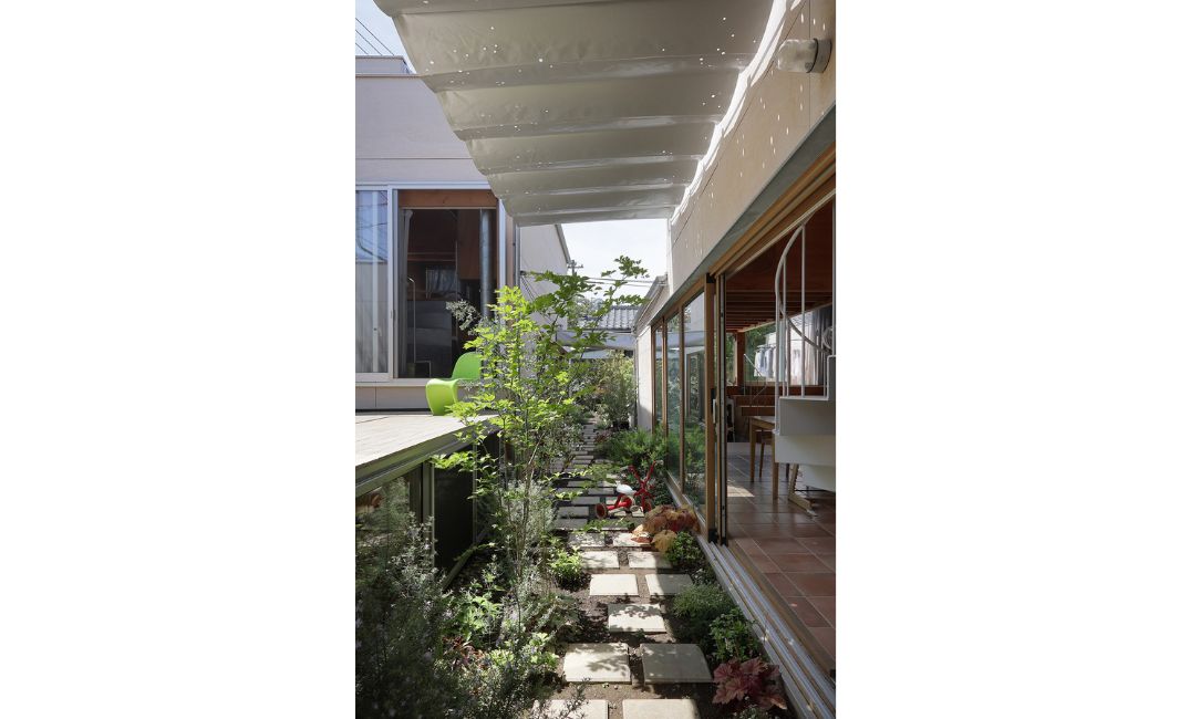 プロの住宅レシピ 開閉式シェードで室内と路地をゆるやかにつなぐ