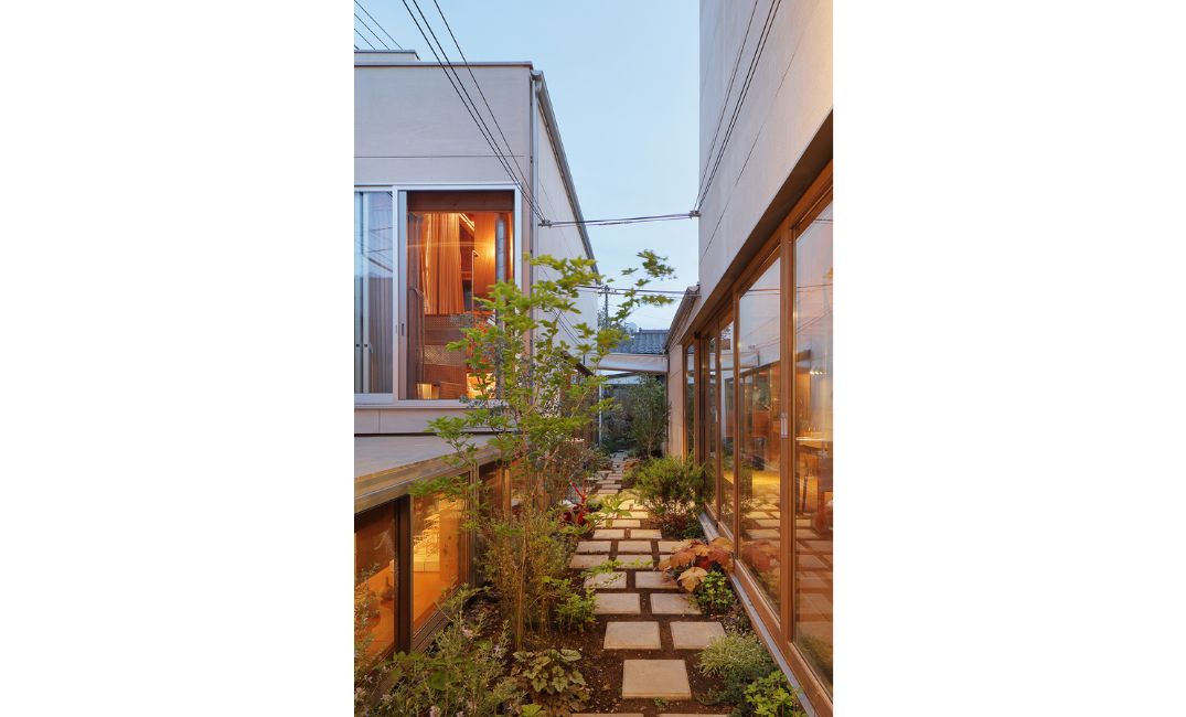 この『Houses』では親類同士の家2棟を隣り合わせに建て、間の路地を共有して緩やかにつながる居住環境を創りました。