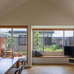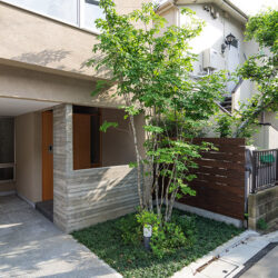 枝が横に広がりにくい立ち性のモミジやミツバツツジなどを植えており、庭の奥行きが狭い場合でも、樹種の選定次第で緑豊かな庭をつくり、家の中のどこにいても緑を身近に楽しむことができます。