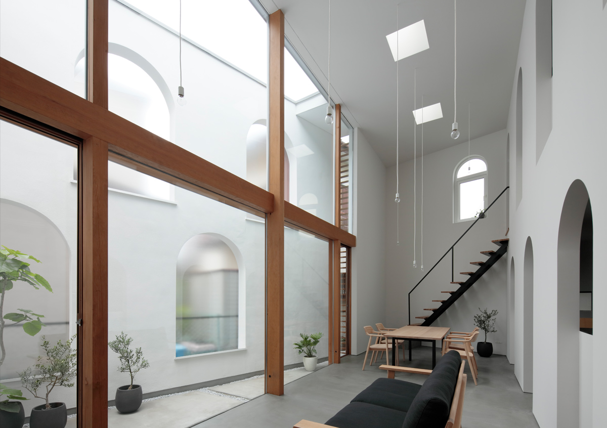 しかし、アーチ状のすりガラス窓があることで、視界を守りながら、光を通してくれます。