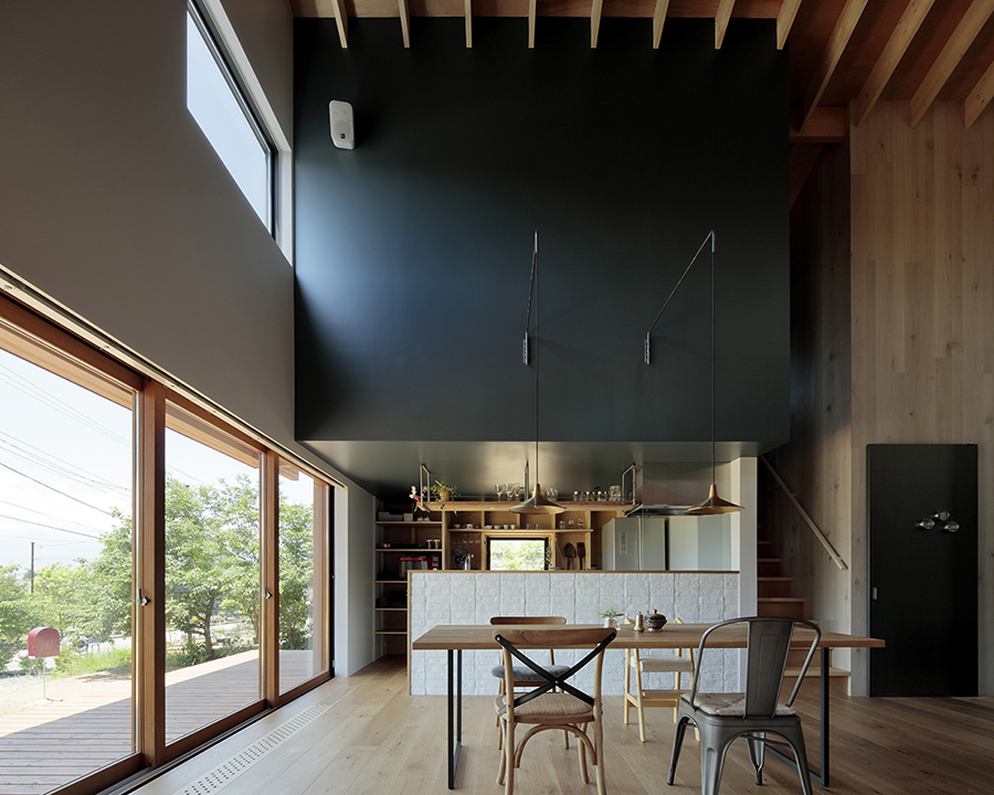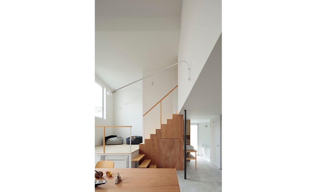 『内庭の家』で作成した照明は一見動かなそうに見えますが、壁付のアームを首振りで左右に動かすことができ、欲しい位置に明かりを移動できます。もう一点は『Tab House』です。これはペンダントライトはflameさんの製品ですが、それを下げるための照明用アームを作成しました。写真のようにこの家は吹き抜けになっており、高さがあるので天井から吊るすのではなく、壁付けの照明にしました。その際に既製品のアームでは長さが足りないため、オリジナルのアームを作り必要な場所にペンダントライトを吊るしました。