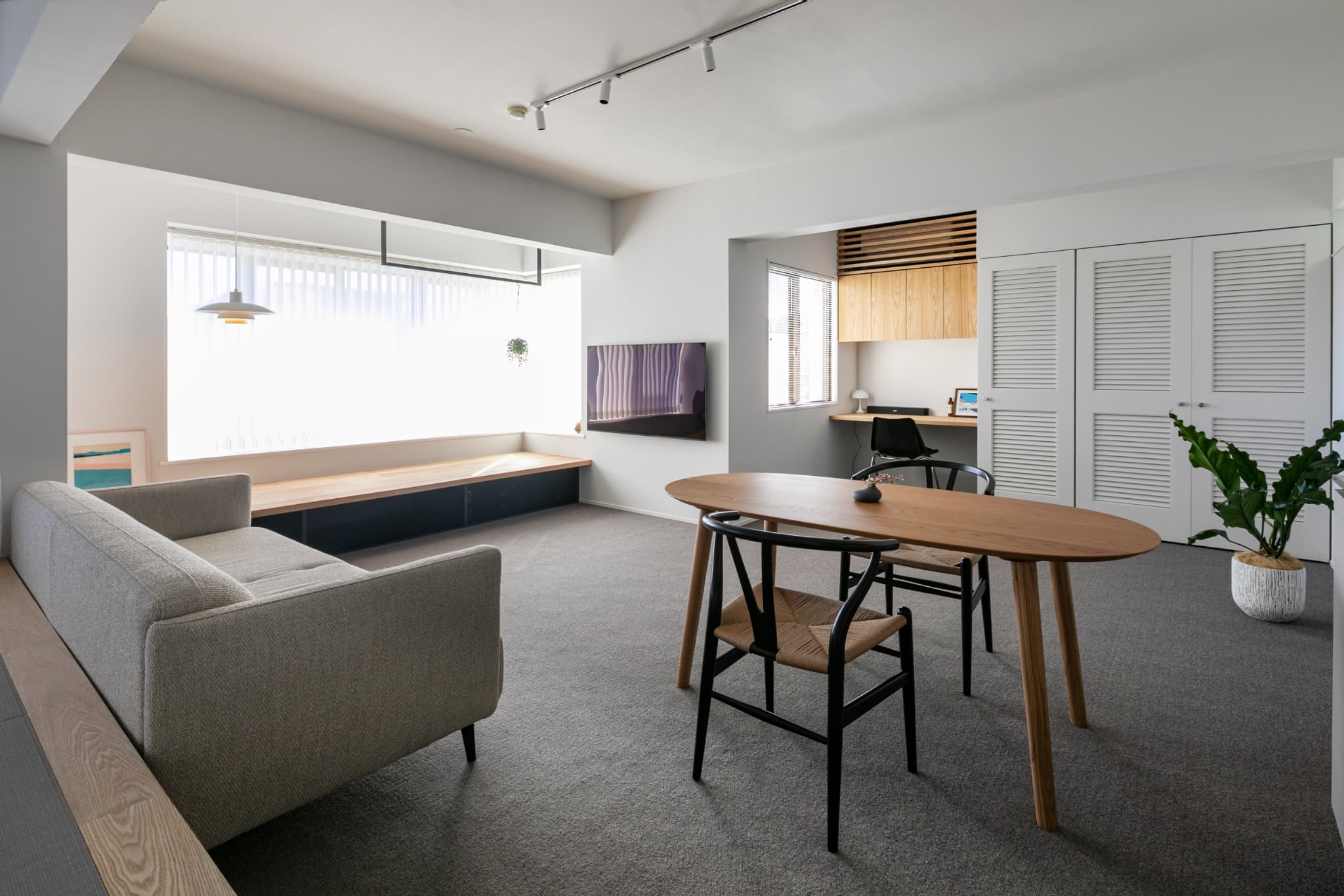 今回はマンションリフォームですが、戸建てなどでも使える工夫なので、取り込んだ自然光を存分に活かす方法として参考になればと思います。