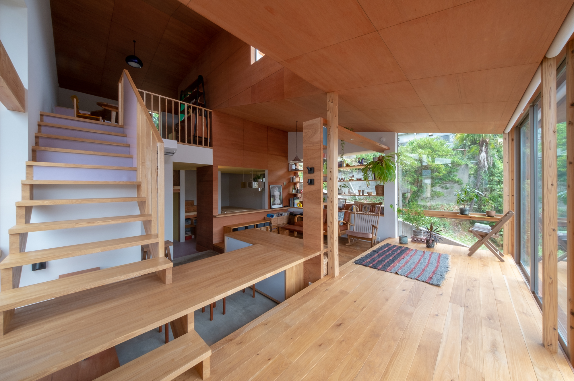 その中で生まれたのが、建築と暮らし方を考えた家具が融合した、テーブルであり、階段であり、部屋でもある場でした。