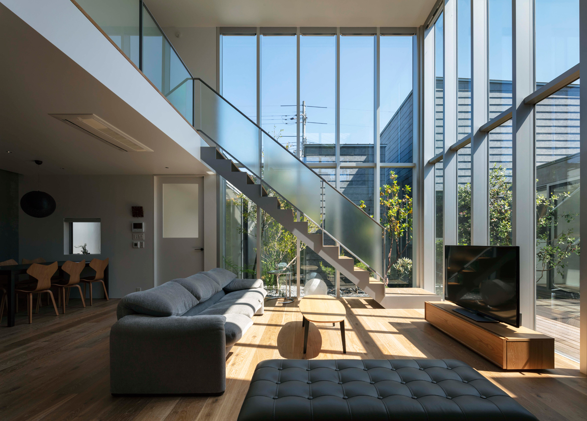 外部からのプライバシーを確保したいという要望から中庭を設計し、外からの目線を気にしない開放感ある住宅を実現しました。