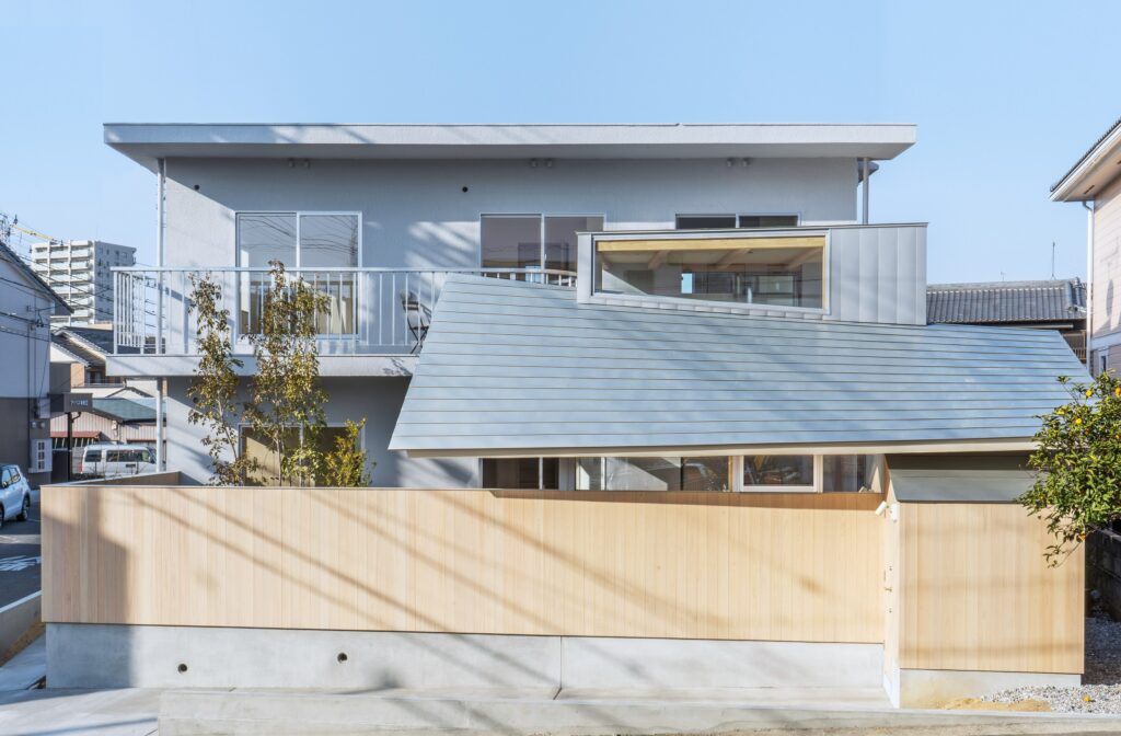 写真2枚目右側の小さな小屋のようなような部分がパントリーで、ここで靴を脱いで家に入ることができます。荷物が多くても玄関まで回らなくても済み、すぐに買ってきたものをしまえるという買い物動線を考えて設計しました。また、駐車場も含めて家全体がぐるりと回れる回遊動線になり、便利ですし、ちょっと楽しい工夫かと思います。