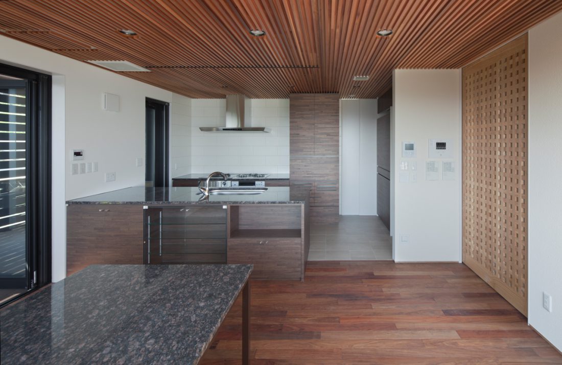 その環境を最大限に生かすため、開口部はフルオープンの折れ戸サッシの採用によって、室内外の一体感を実現しました。