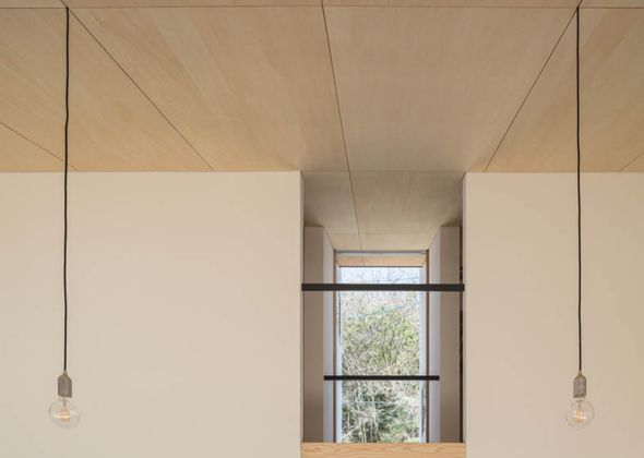 そこで改めてその美しさを非日常として体験してほしいと思い、縦で切り取ってリビングから絵画のように楽しめる窓を設計しました。東側には道路があるため外部の人の気配を避けて自然だけを切り取れるよう、外からの視線をかわした高さから天井際までの長方形になっています。2階部分の通路も視界や光を遮らず景色がリビングに届くように、木製の格子とアクリルで作成した透過する床としています。