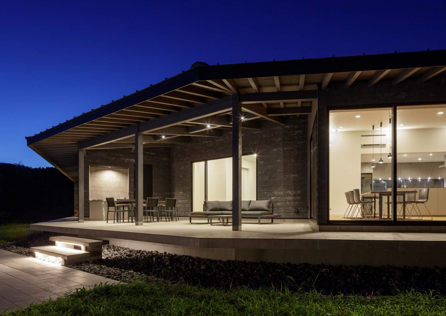 『長南町のヴィラ』の施主の方はフランス人と日本人のご夫婦で、広い屋外スペースは必須との要望をお持ちでした。特にご主人はフランスの南の地域のご出身で、一日の大半の時間を屋外で過ごすのが自然というライフスタイルでした。